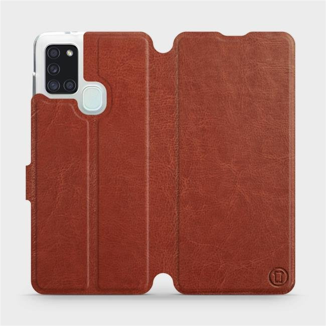 - Hülle mit Klappe von Mobiwear, hergestellt in Polen. Hülle für Samsung Galaxy A21S - Farbe Brown&Gray