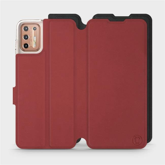 - Hülle mit Klappe von Mobiwear, hergestellt in Polen. Hülle für Motorola Moto G9 Plus - Farbe Dunkelrot mit Schwarz