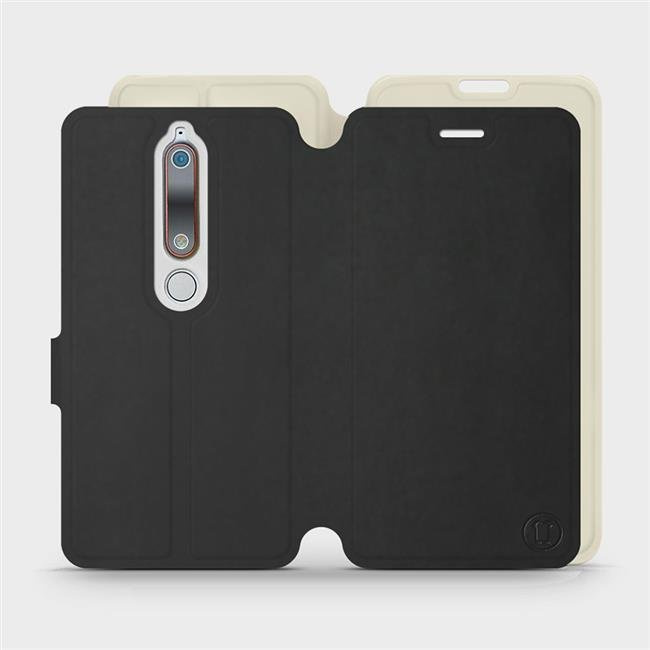 - Hülle mit Klappe von Mobiwear, hergestellt in Polen. Hülle für Nokia 6.1 - Farbe Schwarz mit Platin