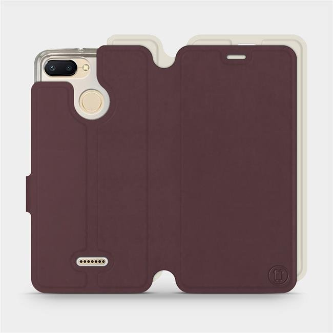 - Hülle mit Klappe von Mobiwear, hergestellt in Polen. Hülle für Xiaomi Redmi 6 - Farbe Burgund mit Platin