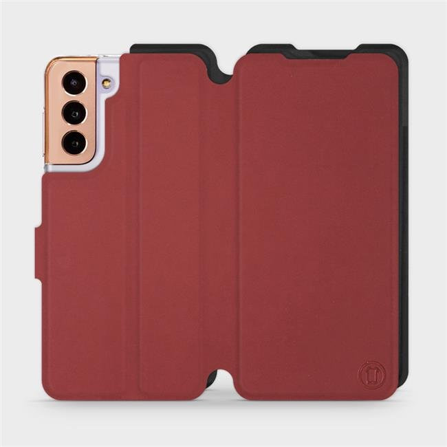 - Hülle mit Klappe von Mobiwear, hergestellt in Polen. Hülle für Samsung Galaxy S21 - Farbe Dunkelrot mit Schwarz