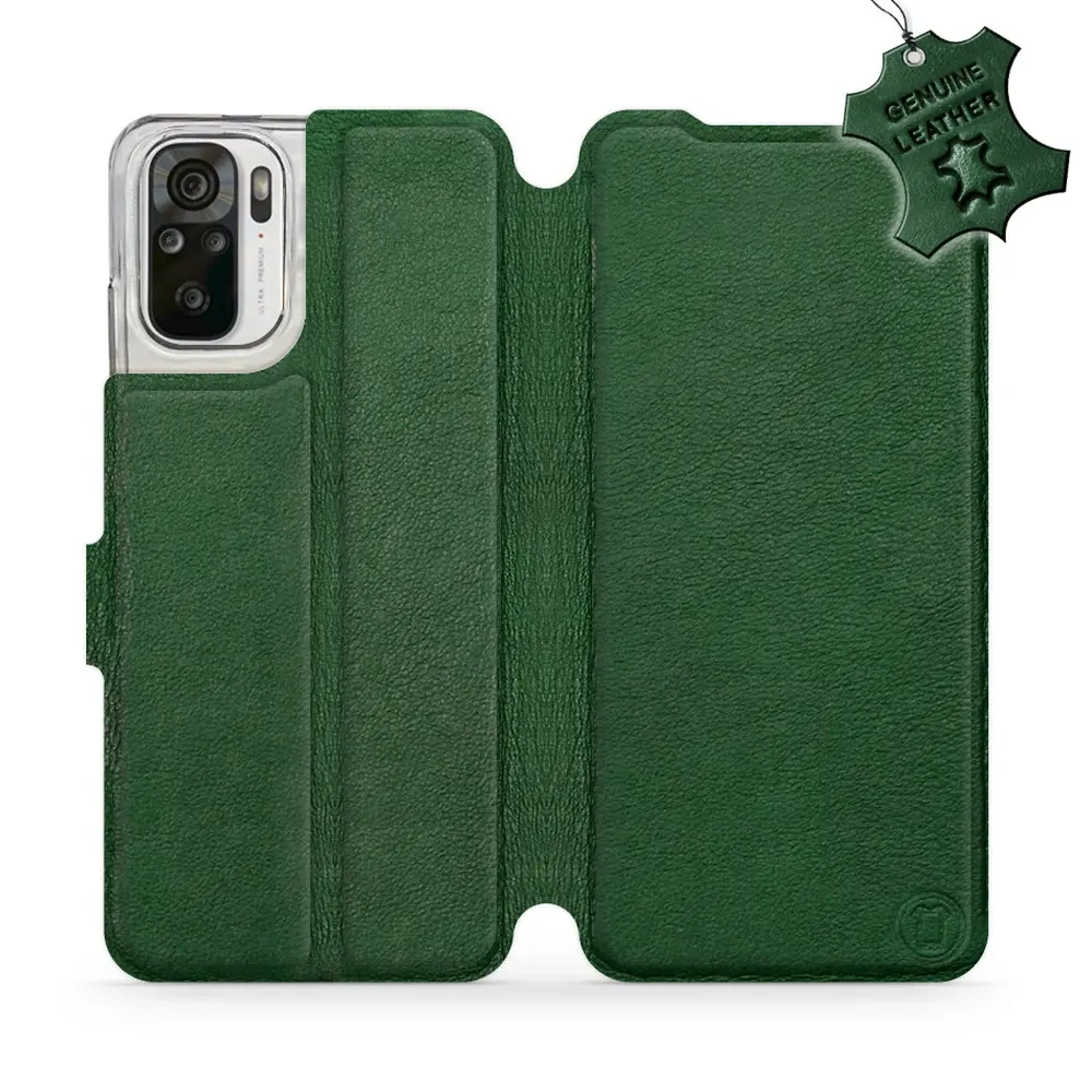 - Hülle mit Klappe von Mobiwear, hergestellt in Polen. Hülle für Xiaomi Redmi Note 10 - Farbe Green Leather