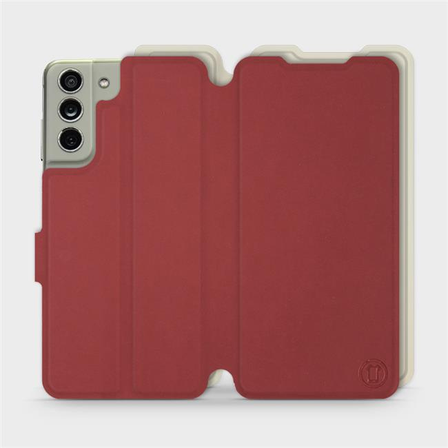 - Hülle mit Klappe von Mobiwear, hergestellt in Polen. Hülle für Samsung Galaxy S21 FE - Farbe Dunkelrot mit Platin
