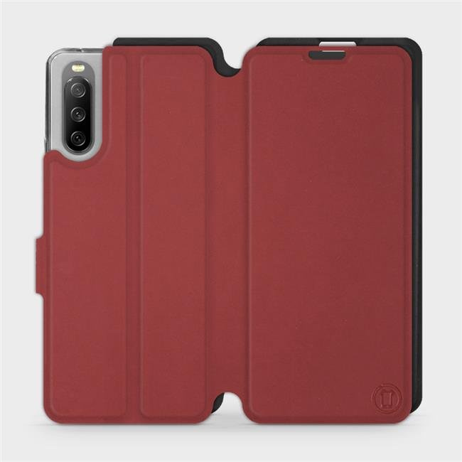 - Hülle mit Klappe von Mobiwear, hergestellt in Polen. Hülle für Sony Xperia 10 III - Farbe Dunkelrot mit Schwarz
