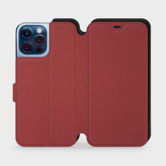 - Hülle mit Klappe von Mobiwear, hergestellt in Polen. Hülle für Apple iPhone 13 Pro Max - Farbe Dunkelrot mit Schwarz
