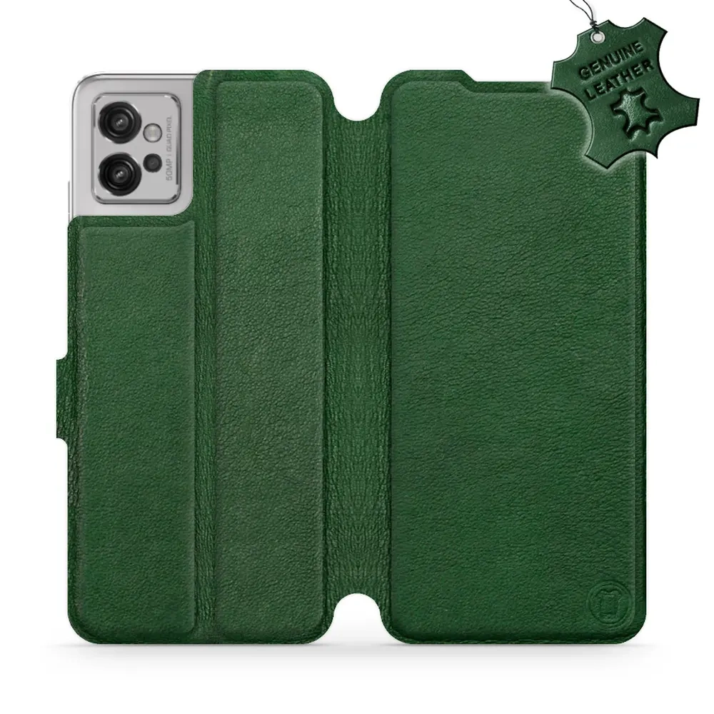 - Hülle mit Klappe von Mobiwear, hergestellt in Polen. Hülle für Motorola Moto G32 - Farbe Green Leather