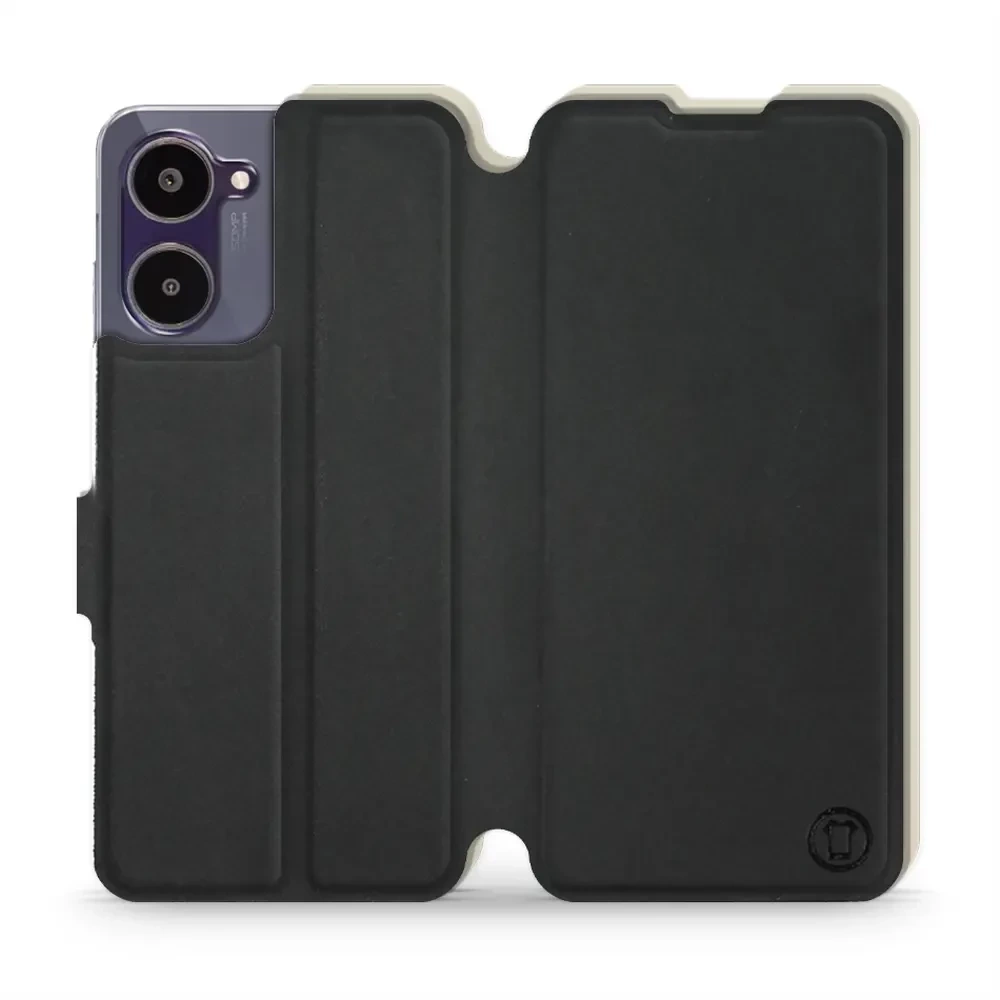 - Hülle mit Klappe von Mobiwear, hergestellt in Polen. Hülle für Realme 10 - Farbe Schwarz mit Platin