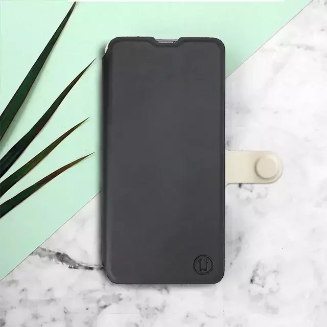 - Hülle mit Klappe von Mobiwear, hergestellt in Polen. Hülle für Samsung Galaxy A24 - Farbe Schwarz mit Platin