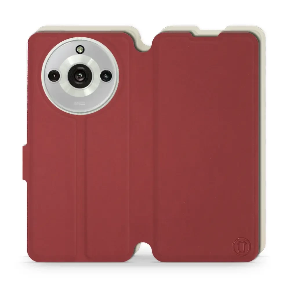 - Hülle mit Klappe von Mobiwear, hergestellt in Polen. Hülle für Realme 11 Pro - Farbe Dunkelrot mit Platin