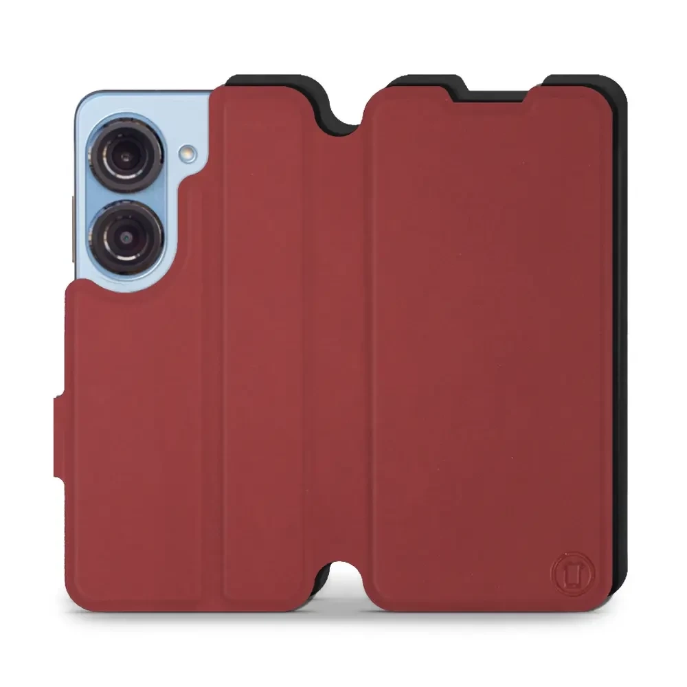 - Hülle mit Klappe von Mobiwear, hergestellt in Polen. Hülle für Asus Zenfone 10 - Farbe Dunkelrot mit Schwarz