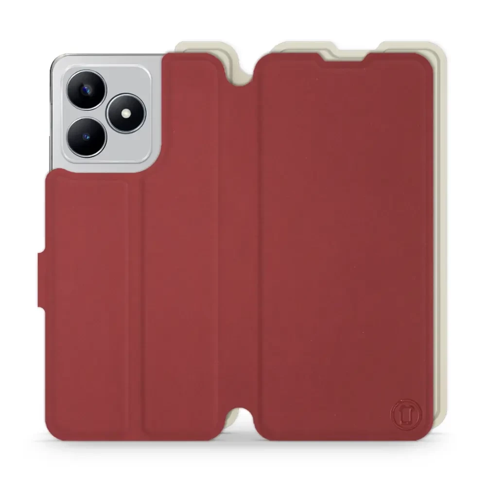 - Hülle mit Klappe von Mobiwear, hergestellt in Polen. Hülle für Realme C53 - Farbe Dunkelrot mit Platin
