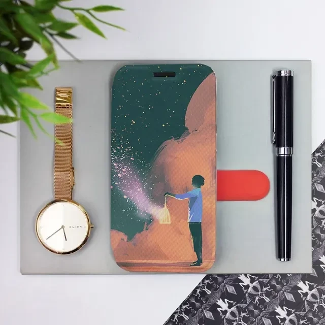 - Sie können bequem Filme ansehen - Sie müssen Ihr Telefon nur an die speziell geformte Seite der Hülle lehnen.