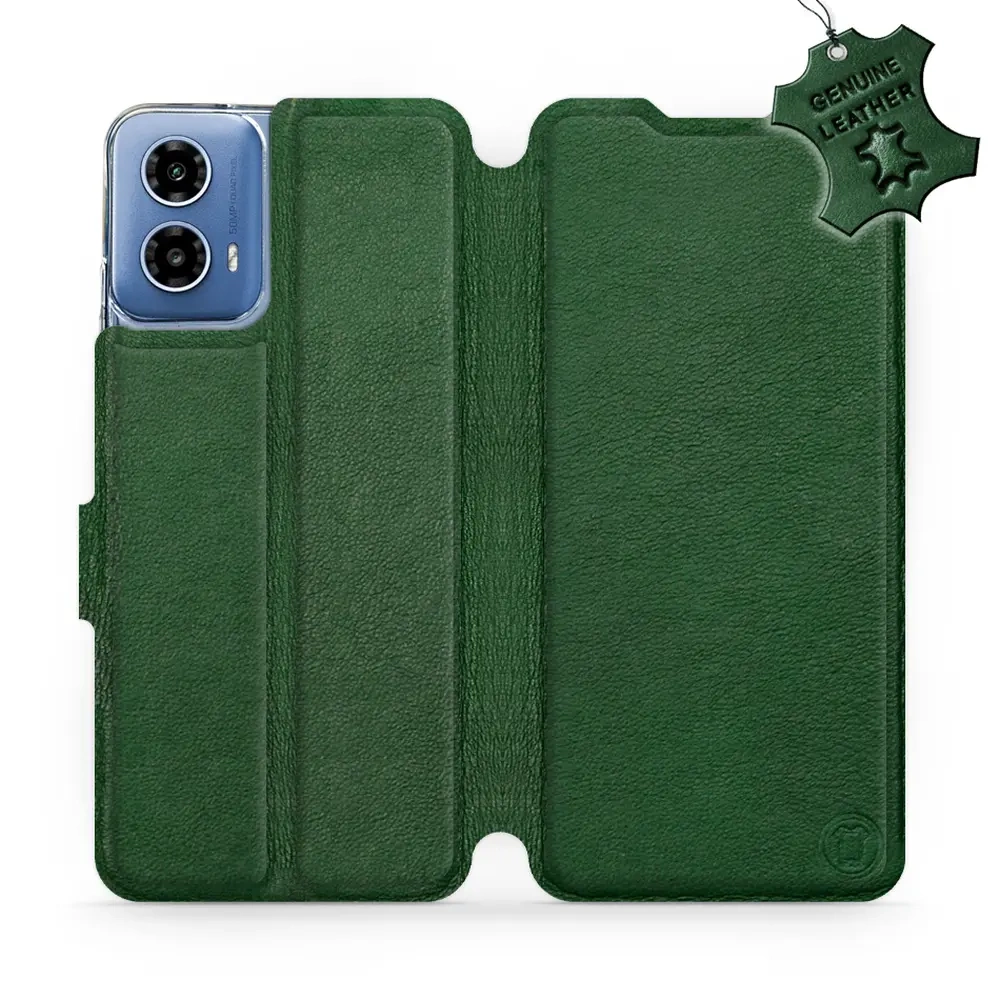 - Hülle mit Klappe von Mobiwear, hergestellt in Polen. Hülle für Motorola Moto G34 5G - Farbe Green Leather