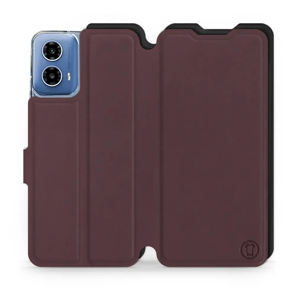 - Hülle mit Klappe von Mobiwear, hergestellt in Polen. Hülle für Motorola Moto G34 5G - Farbe Burgund mit Schwarz
