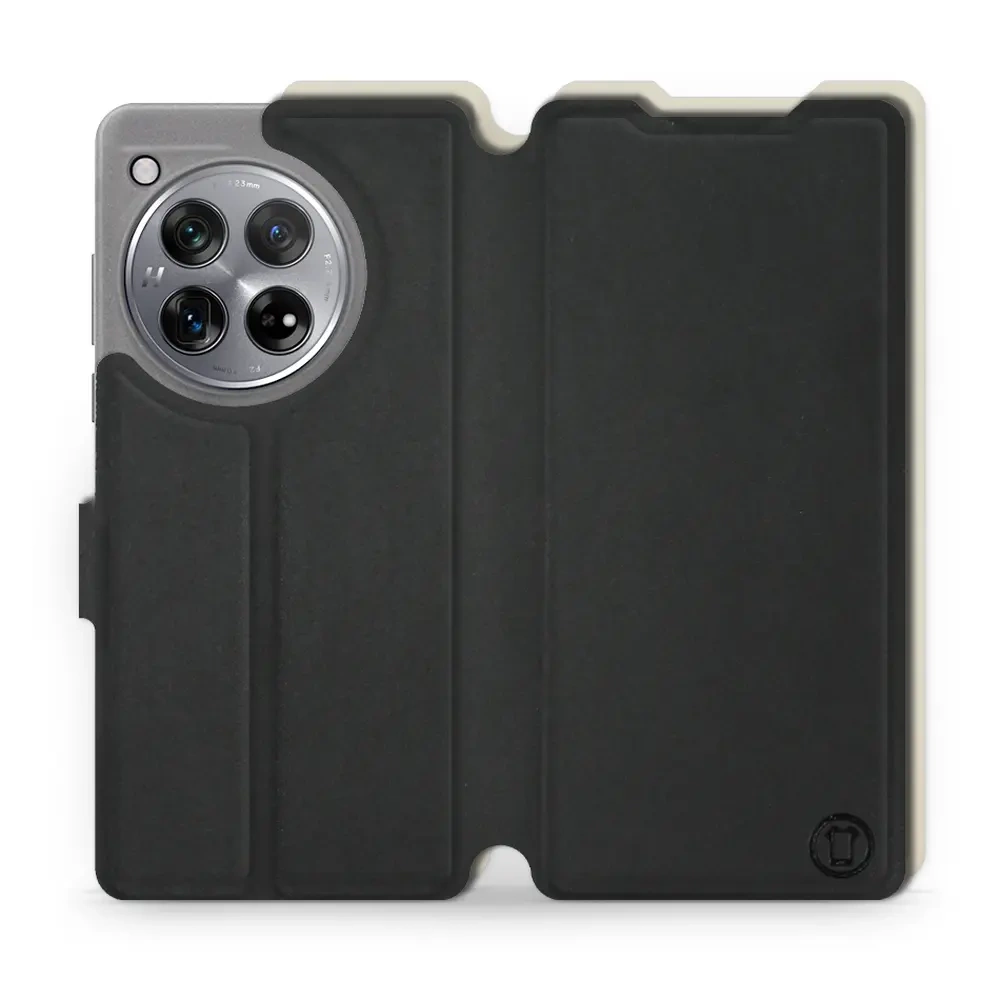 - Hülle mit Klappe von Mobiwear, hergestellt in Polen. Hülle für OnePlus 12R - Farbe Schwarz mit Platin