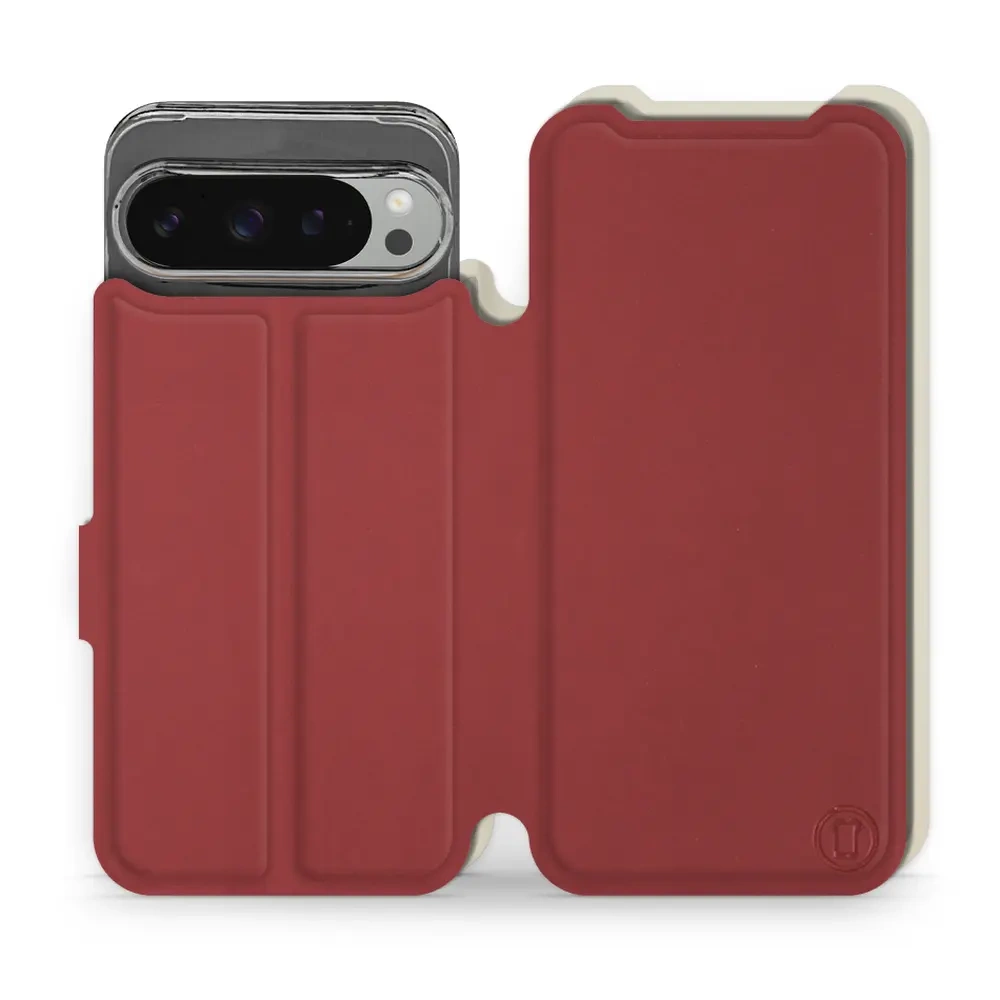 - Hülle mit Klappe von Mobiwear, hergestellt in Polen. Hülle für Google Pixel 9 Pro XL - Farbe Dunkelrot mit Platin