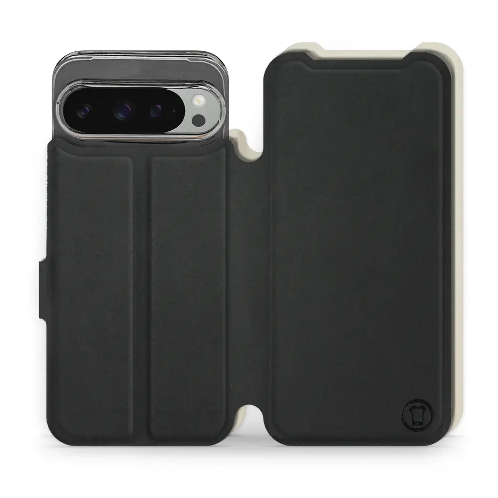- Hülle mit Klappe von Mobiwear, hergestellt in Polen. Hülle für Google Pixel 9 Pro XL - Farbe Schwarz mit Platin
