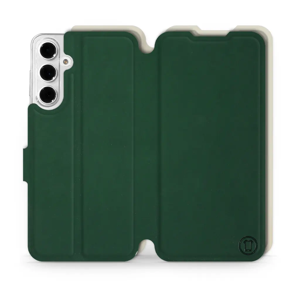 - Hülle mit Klappe von Mobiwear, hergestellt in Polen. Hülle für Samsung Galaxy A16 5G - Farbe Grün mit Platin