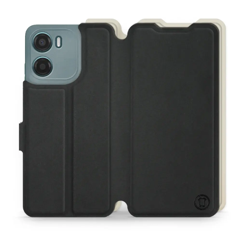 - Hülle mit Klappe von Mobiwear, hergestellt in Polen. Hülle für Motorola Moto E15 - Farbe Schwarz mit Platin