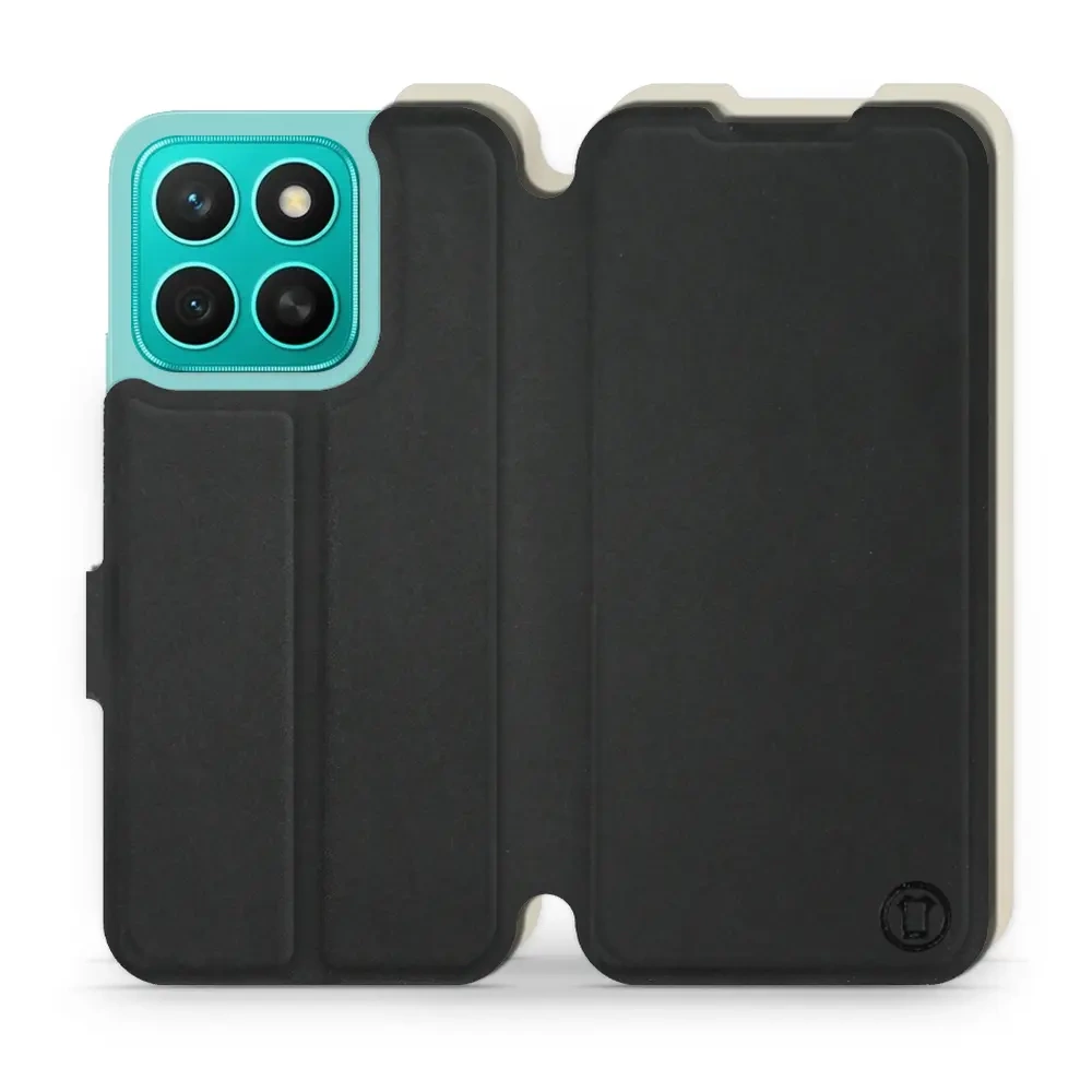 - Hülle mit Klappe von Mobiwear, hergestellt in Polen. Hülle für Huawei Honor X8c - Farbe Schwarz mit Platin