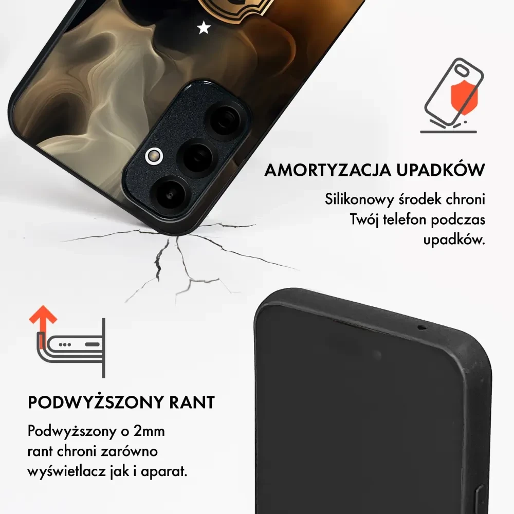 - Die Rückseite, auf der die beeindruckenden Grafiken aufgebracht sind, besteht aus Polycarbonat. Dieses Material ist extrem widerstandsfähig und bietet zusammen mit den flexiblen Seiten zusätzlichen Schutz für Ihr Gerät.