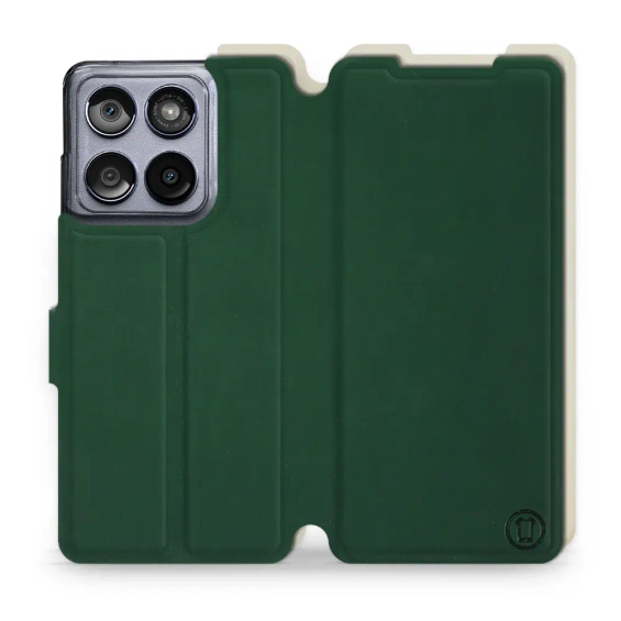 - Hülle mit Klappe von Mobiwear, hergestellt in Polen. Hülle für Motorola Edge 60 Fusion - Farbe Grün mit Platin
