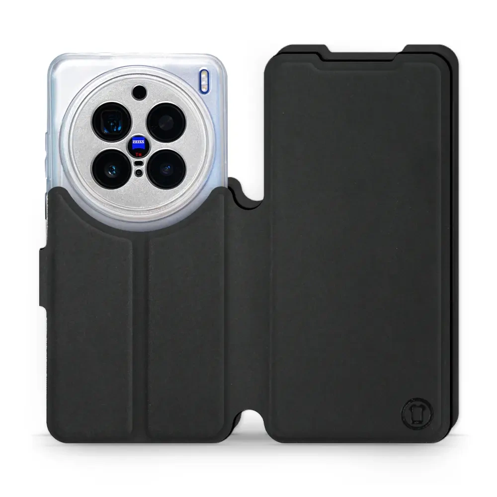 - Hülle mit Klappe von Mobiwear, hergestellt in Polen. Hülle für Vivo X200 Pro 5G - Farbe Schwarz mit Schwarz