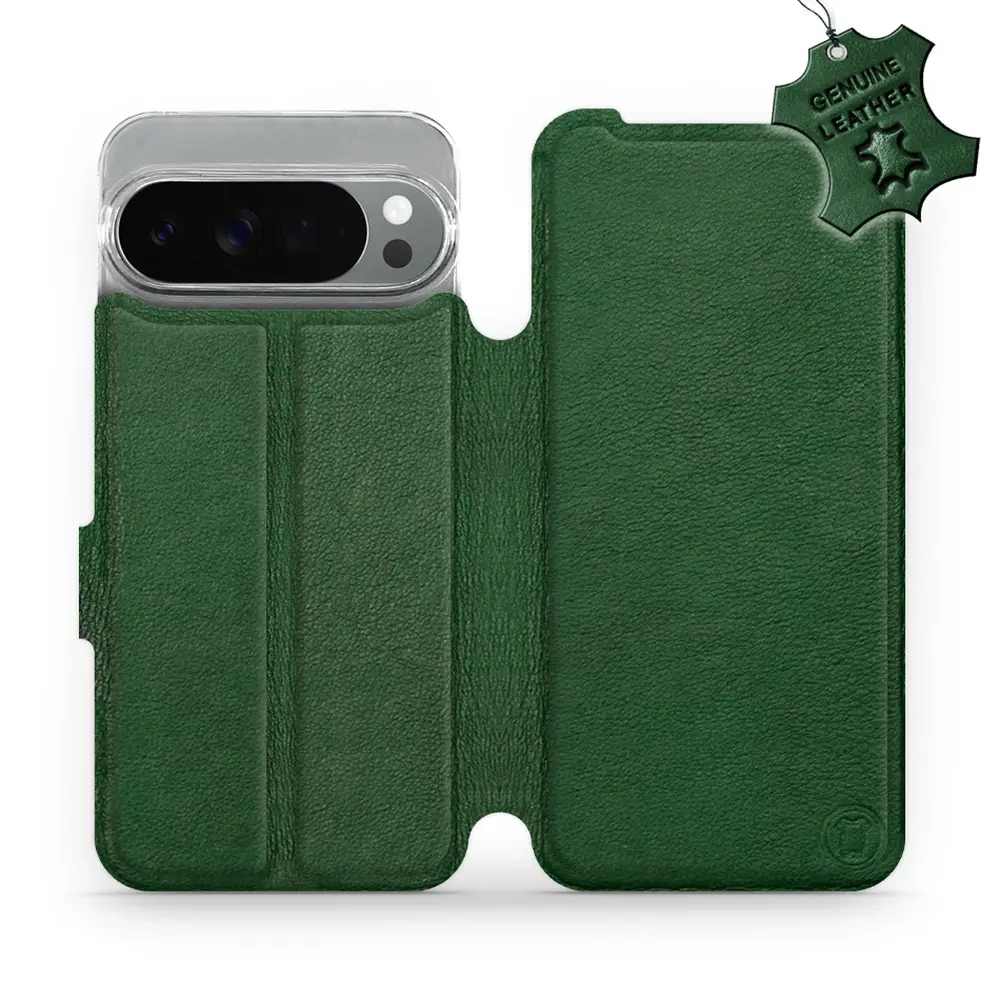 - Hülle mit Klappe von Mobiwear, hergestellt in Polen. Hülle für Google Pixel 10 Pro XL - Farbe Green Leather