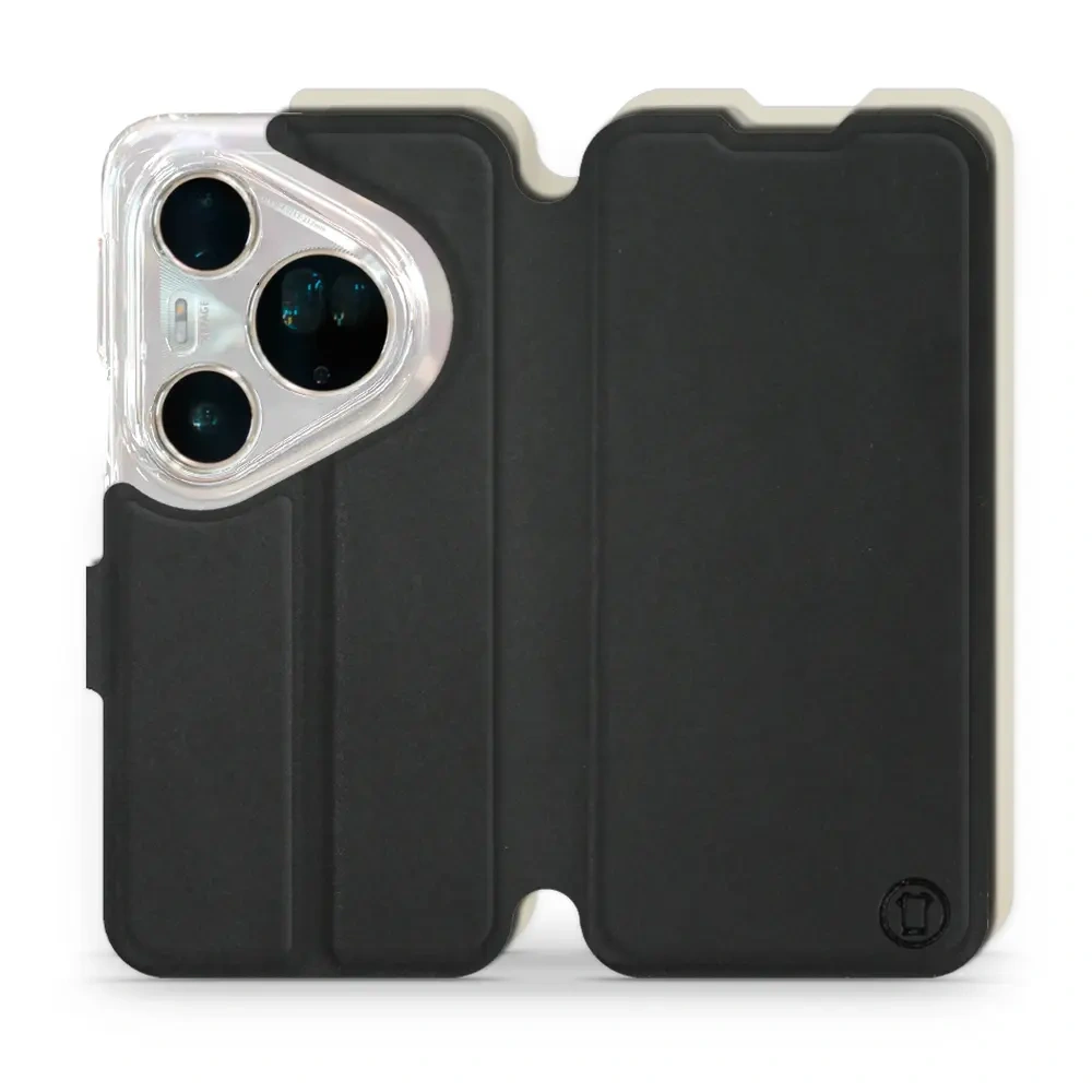 - Hülle mit Klappe von Mobiwear, hergestellt in Polen. Hülle für Huawei Pura 80 Ultra - Farbe Schwarz mit Platin