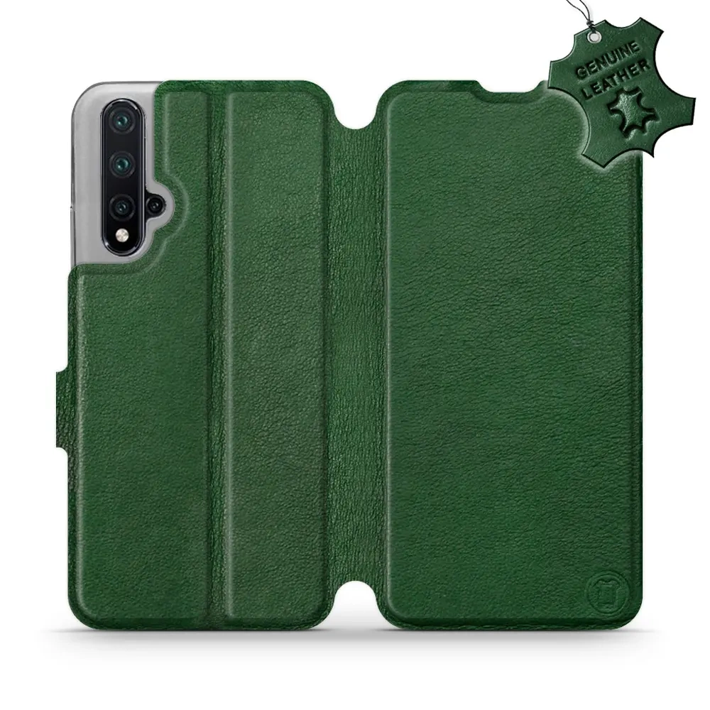 Etui ze skóry naturalnej do Huawei Nova 5T - wzór Green Leather