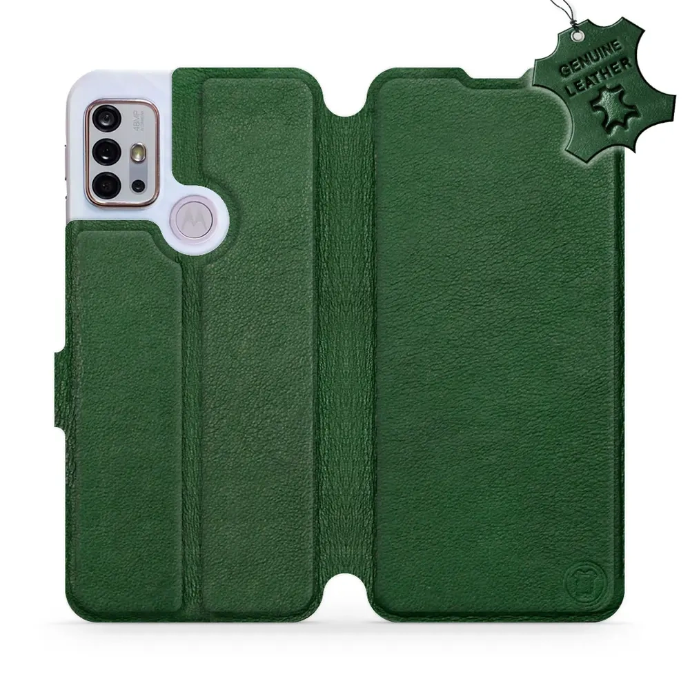 Etui ze skóry naturalnej do Motorola Moto G10 - wzór Green Leather