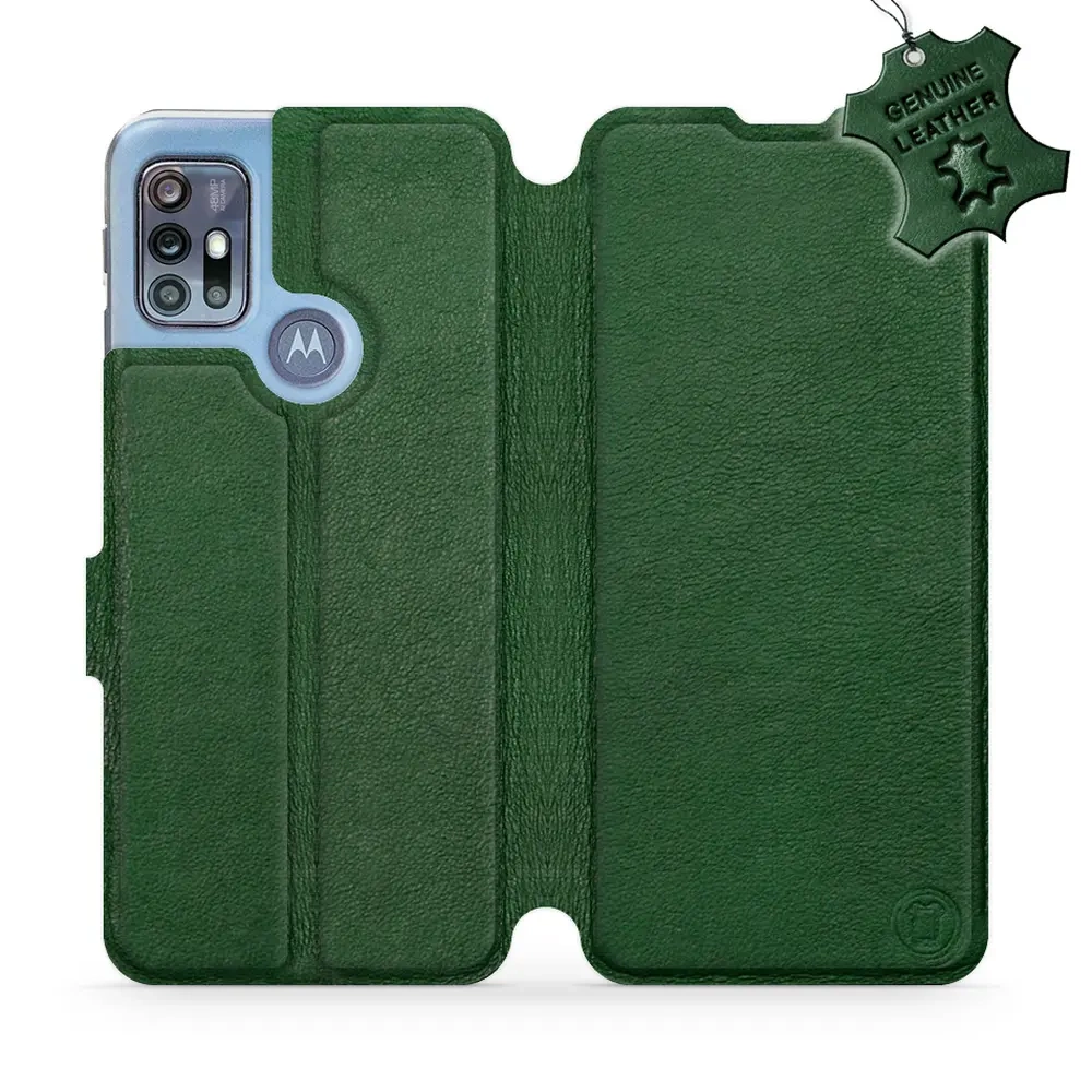 Etui ze skóry naturalnej do Motorola Moto G20 - wzór Green Leather