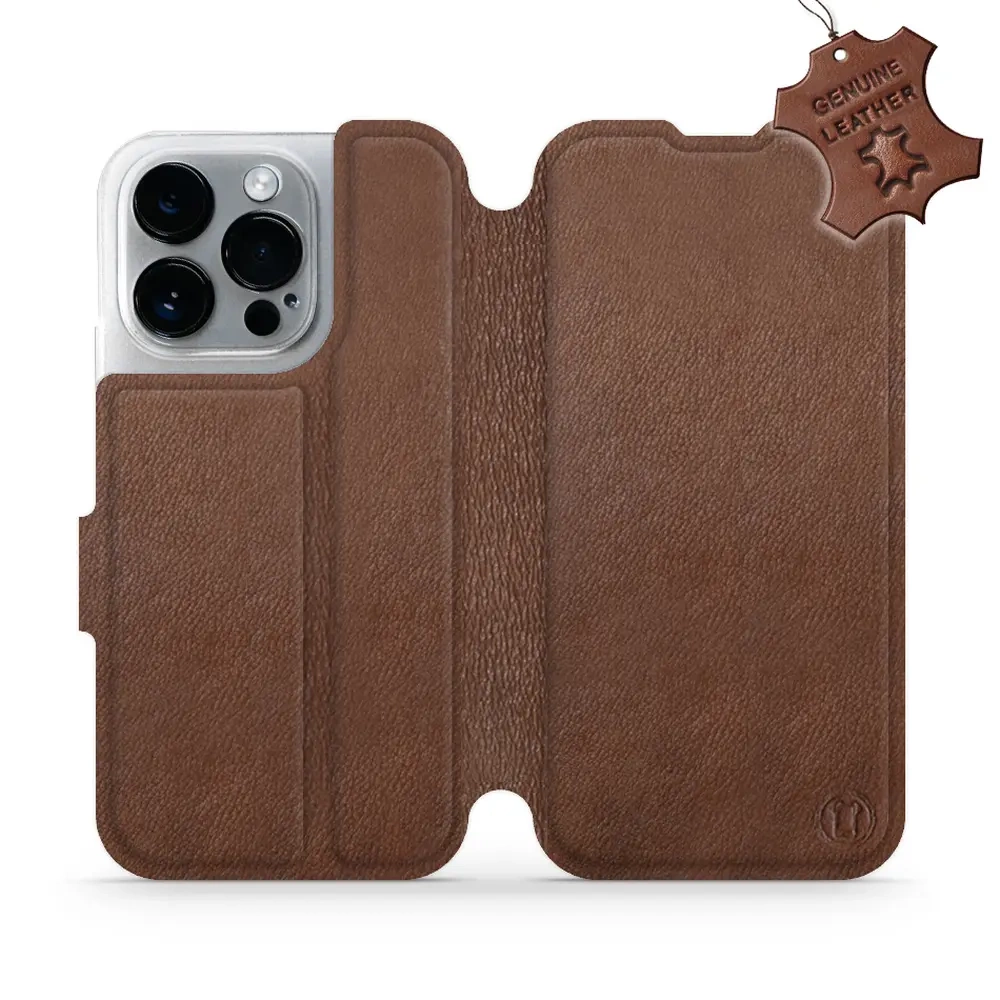 Etui ze skóry naturalnej do Apple iPhone 14 Pro - wzór Brown Leather