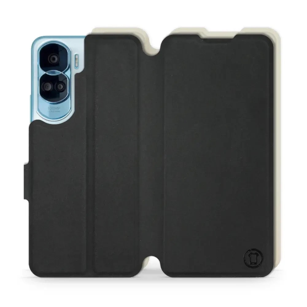 - Etui z klapką marki Mobiwear wykonane w Polsce. Etui Soft Touch do Huawei Honor 90 Lite - wzór Satynowa czerń z platyną