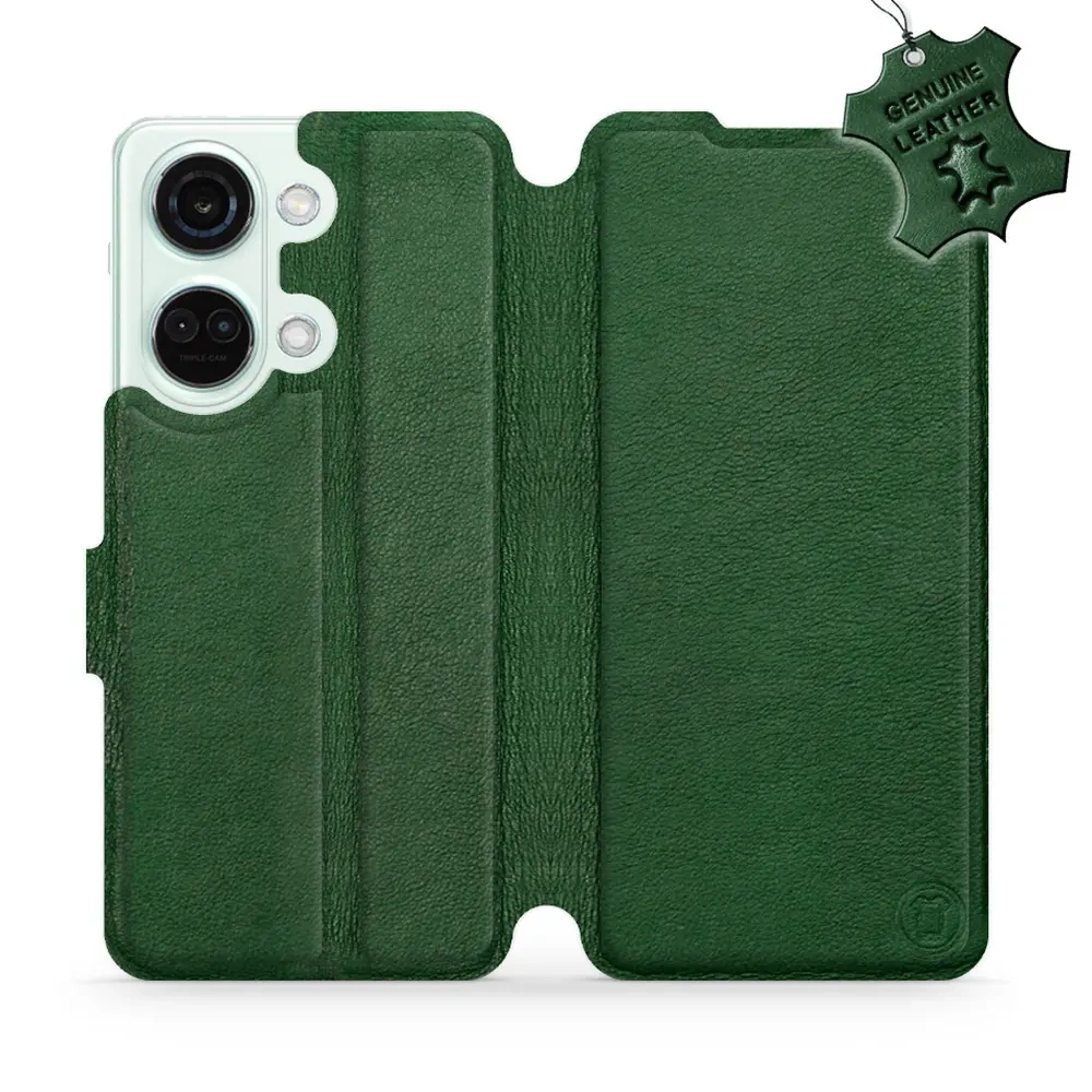 Etui ze skóry naturalnej do OnePlus Nord 3 5G - wzór Green Leather