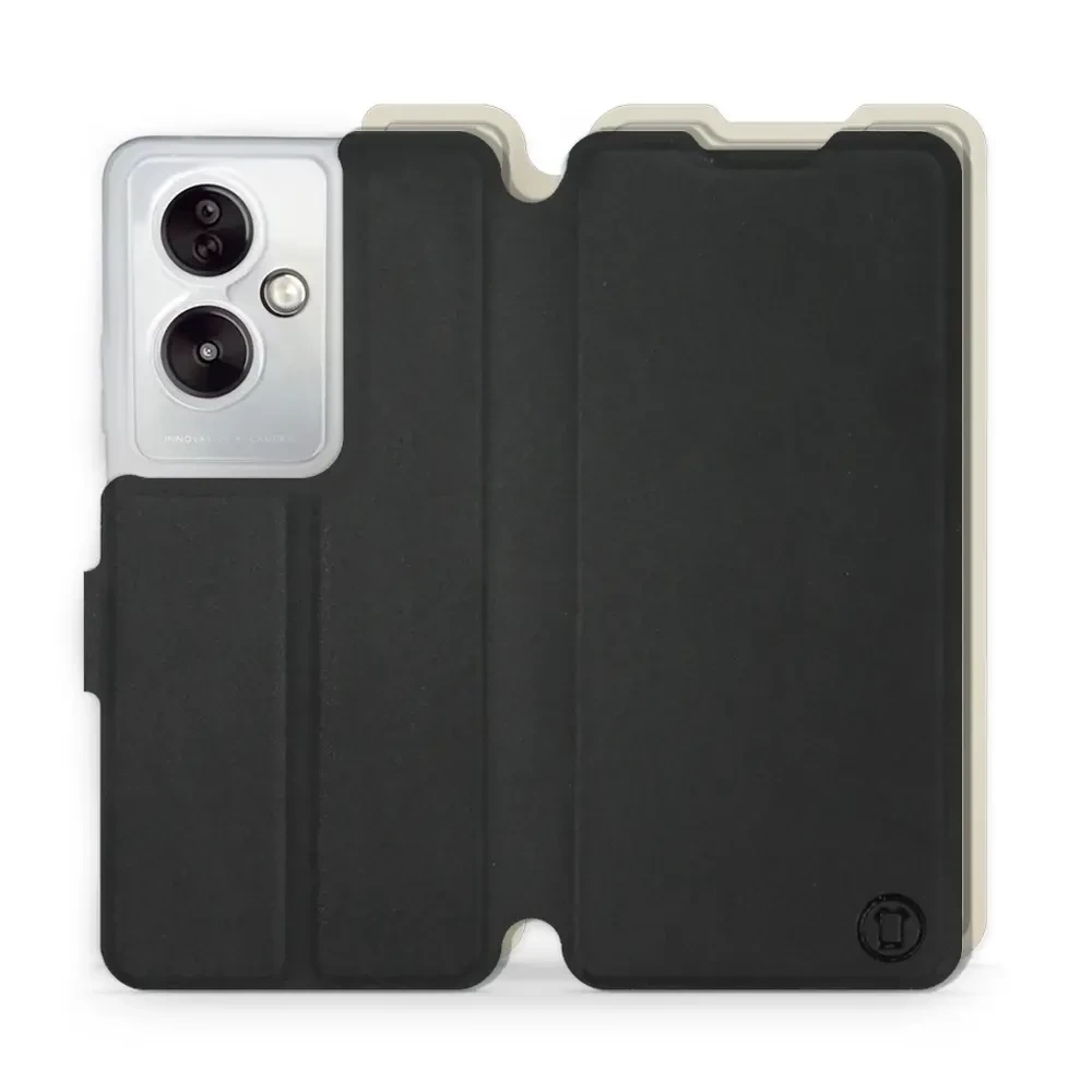 - Etui z klapką marki Mobiwear wykonane w Polsce. Etui Soft Touch do OPPO A79 5G - wzór Satynowa czerń z platyną