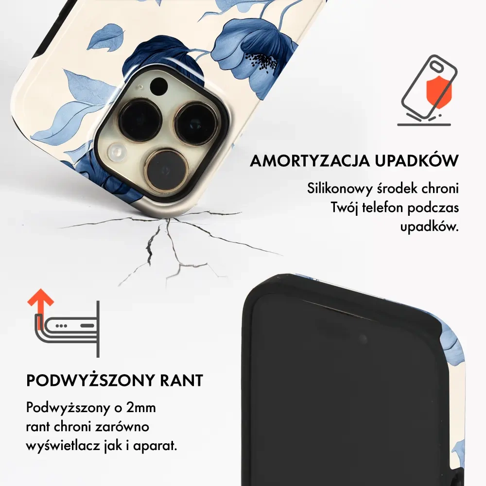 Etui jest wyposażone w podniesione krawędzie wokół ekranu i obiektywu aparatu, zapewniając dodatkową warstwę ochrony.