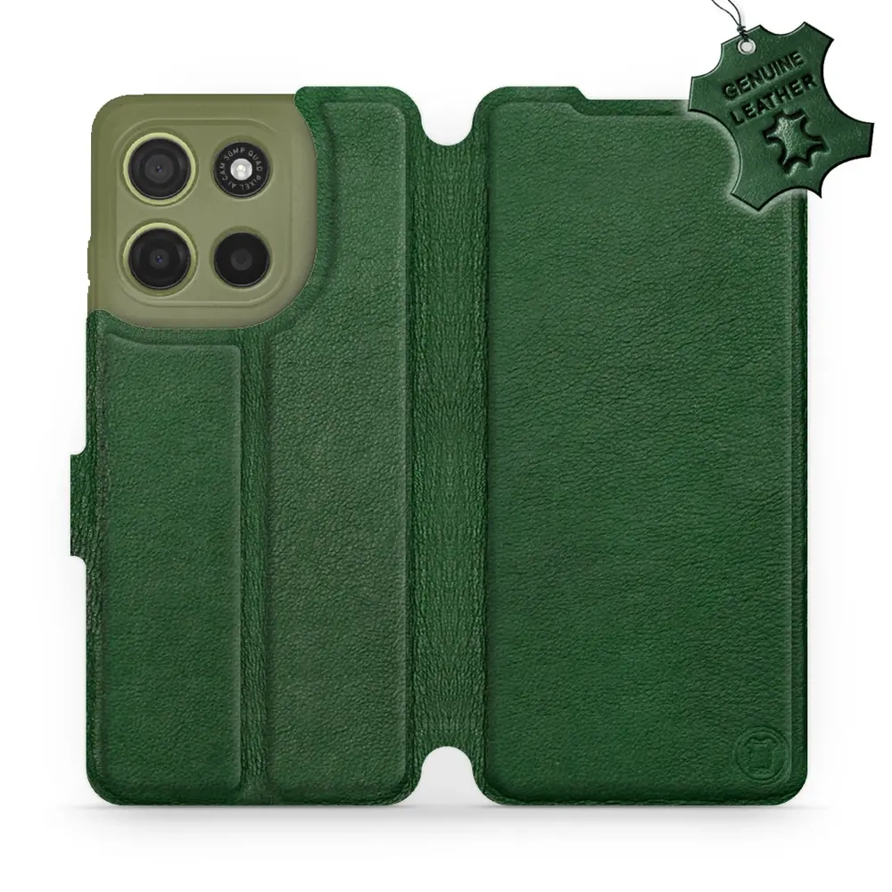 Etui ze skóry naturalnej do Motorola Moto G15 - wzór Green Leather