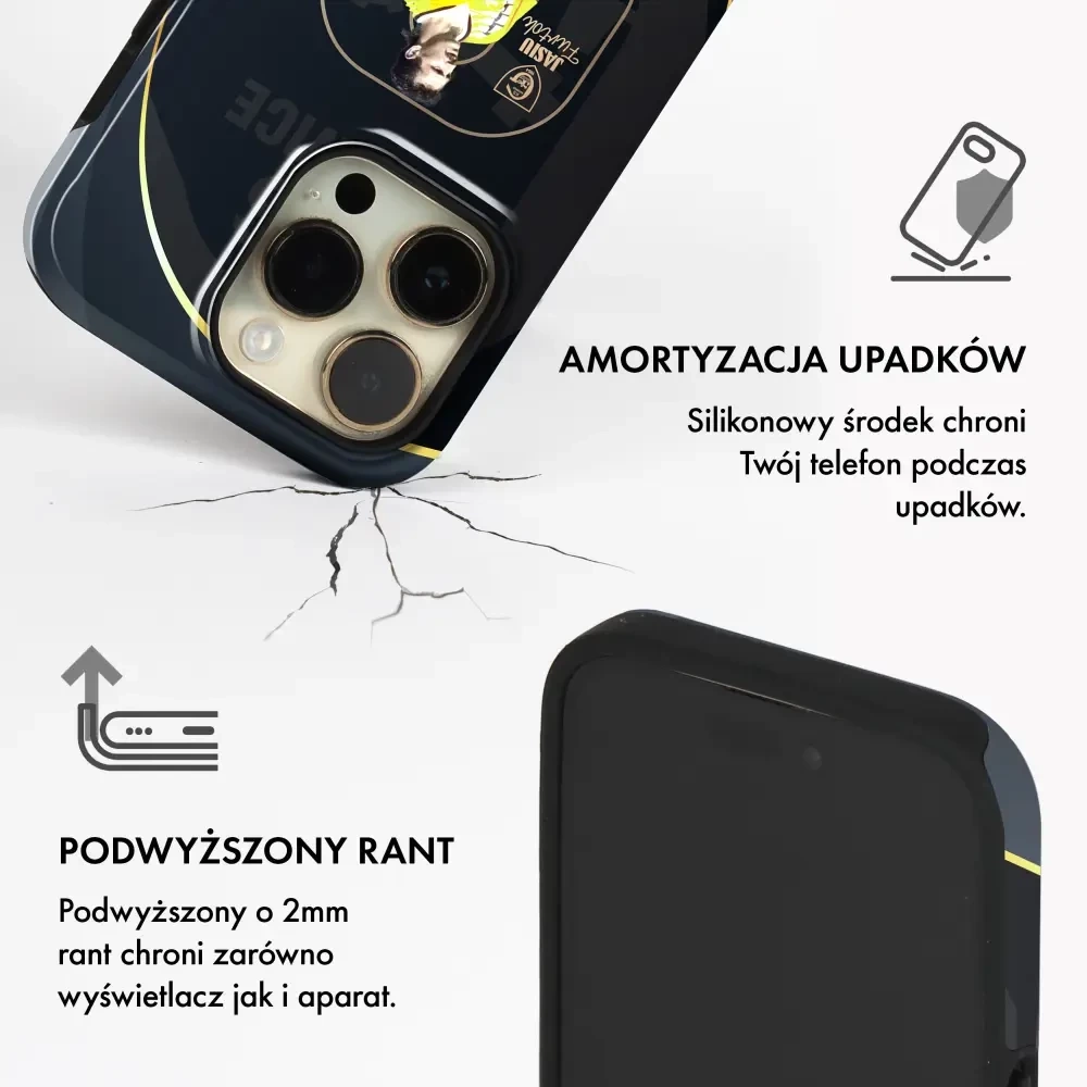 Etui jest wyposażone w podniesione krawędzie wokół ekranu i obiektywu aparatu, zapewniając dodatkową warstwę ochrony.