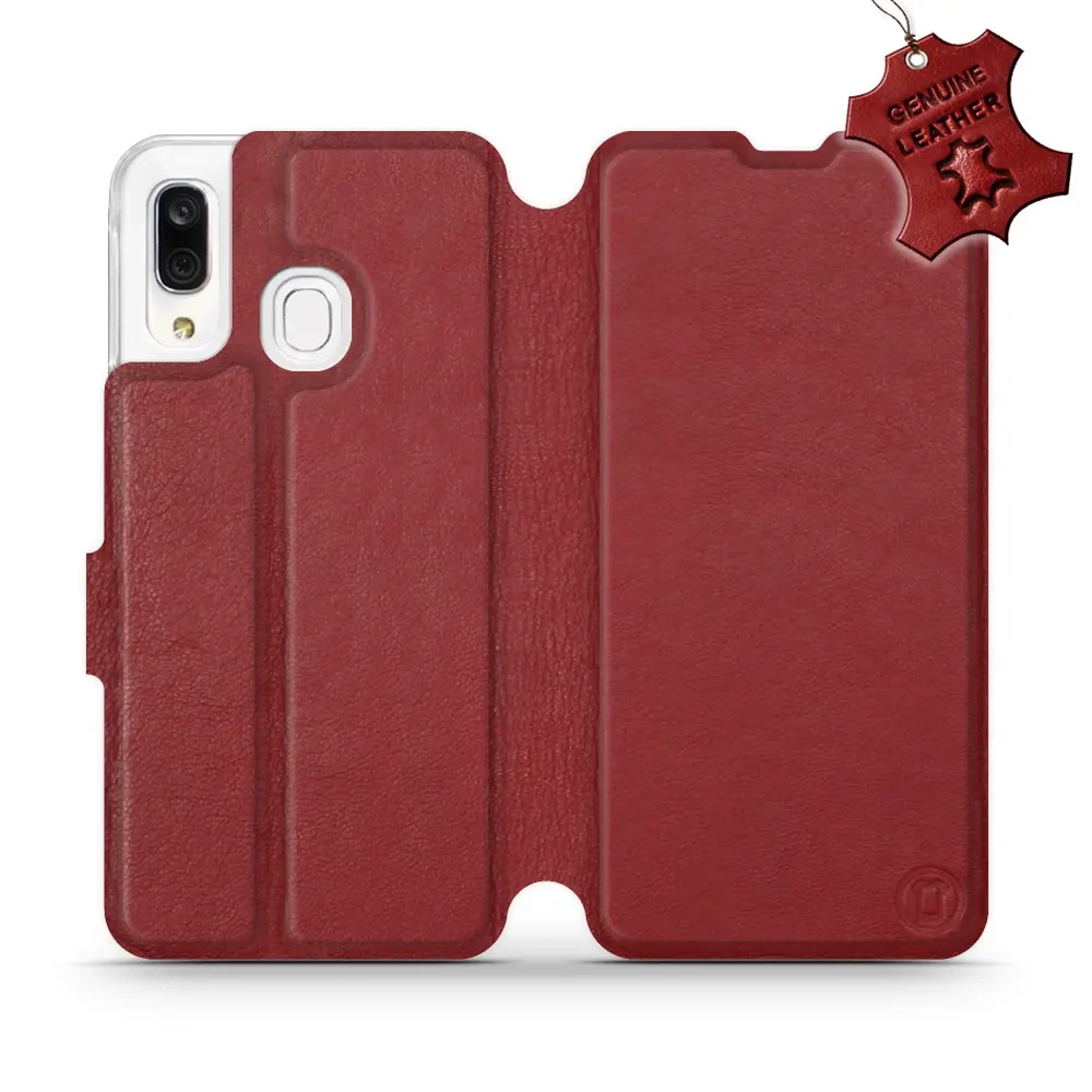 Etui ze skóry naturalnej do Samsung Galaxy A40 - wzór Dark Red Leather