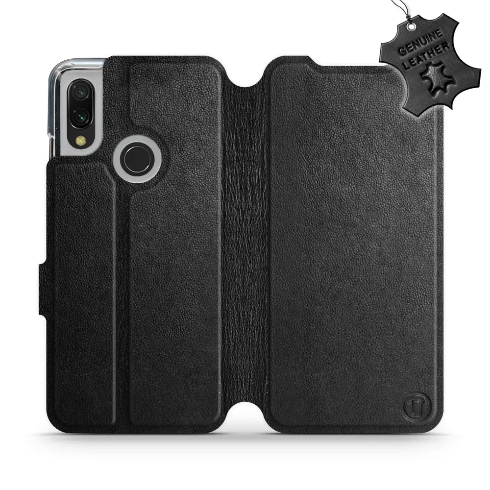 Etui ze skóry naturalnej do Xiaomi Redmi 7 - wzór Black Leather