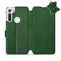 Etui ze skóry naturalnej do Motorola Moto G8 - wzór Green Leather
